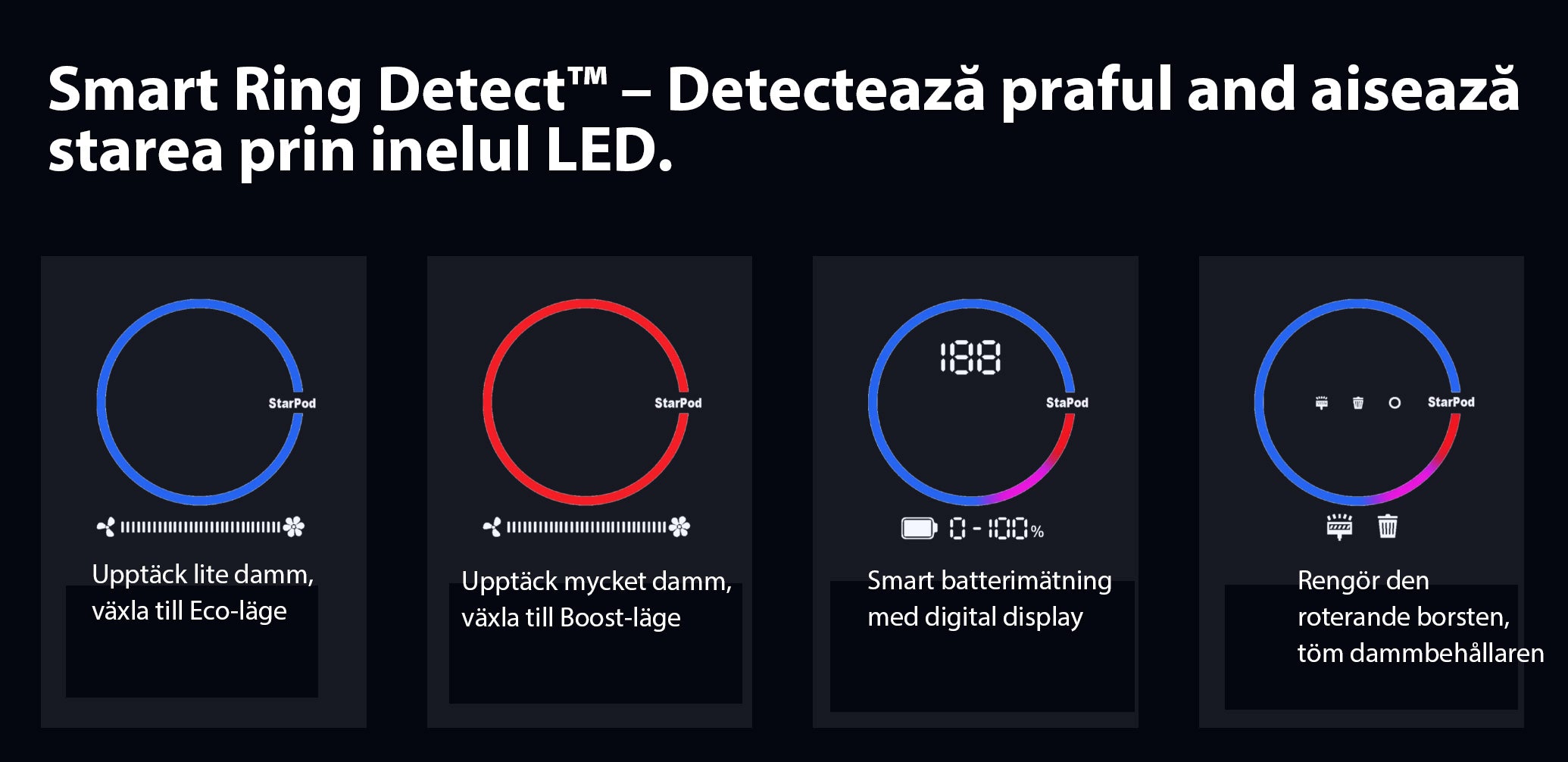 StarPod kraftfulla X9-motor roterar i mer än 135 000 varv per minut, vilket skapar ett sug på över 27 000 Pa. Den kan nästan suga upp alla typer av skräp.